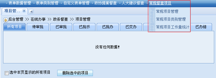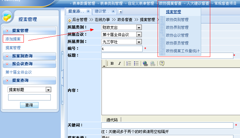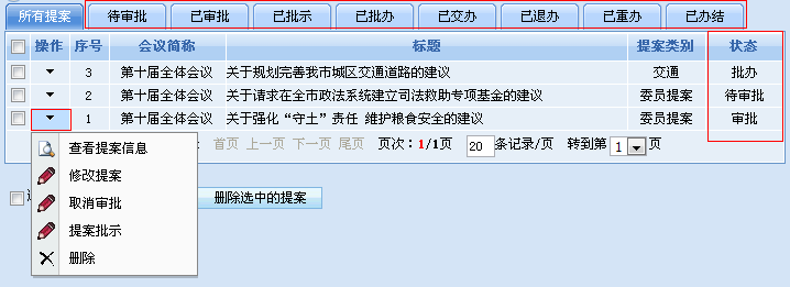“常規(guī)提案處理系統(tǒng)”能夠有效的對(duì)常規(guī)項(xiàng)目(一般為人大主任/政協(xié)主席直接交待的建議/提案)進(jìn)行立項(xiàng)、跟蹤與處理。